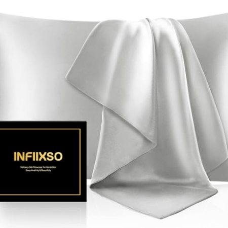 [62% off – Amazon Deal] INFIIXSO Mulberry Silk Pillowcase for Hair and Skin, Silk Pillow Cases Standard Size with Hidden Zipper 20×26 Inches, Ultra Smooth and Soft Cooling Pillow Cases for Hot Sleepers(Light Grey, 1 Pack)