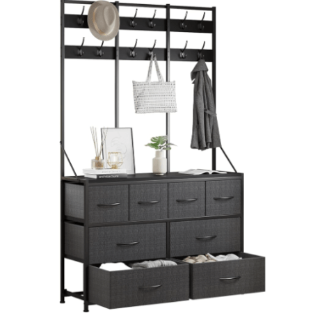 [50%off – Amazon Deal] LUMTOK 8 Drawers Dresser, Chest of Drawer, Clothes Rack with Fabric Drawers, Hall Tree with Hooks and Drawers for Clothes, Toys, for Hallway, Entryway,Bedroom, Living Room, Closets & Nursery(Grey)