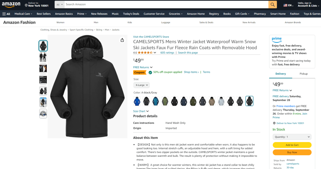 【DESIGN】This men’s ski jacket not only provides warmth and comfort, but it also features a stylish look. It includes internal stretch cuffs, an adjustable hood and hem, and a soft lining for extra comfort. With two external zippered pockets, the CAMELSPORTS winter jacket strikes a perfect balance between warmth and bulk, offering excellent protection without restricting movement.