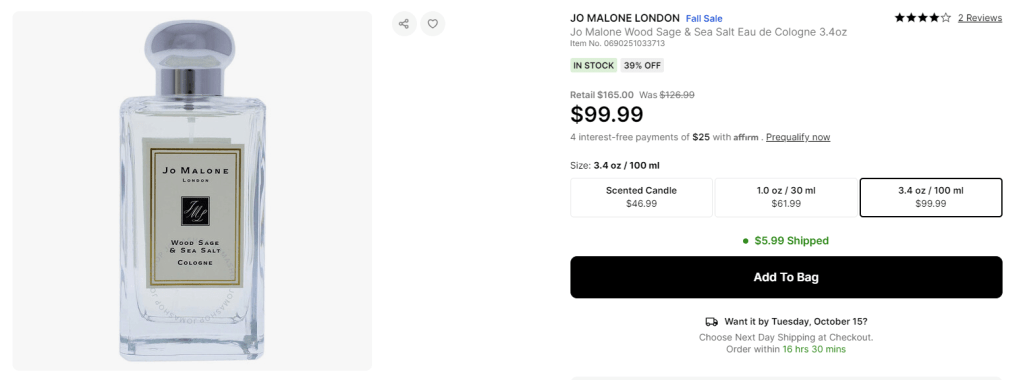 Available in a generous 3.4 oz size, this fragrance promises long-lasting enjoyment. It is authenticated by its SKU 590041568 and barcode 0690251033713. Discover the irresistible charm of Jo Malone London Wood Sage & Sea Salt 3.4oz Eau de Cologne and make it your signature scent.