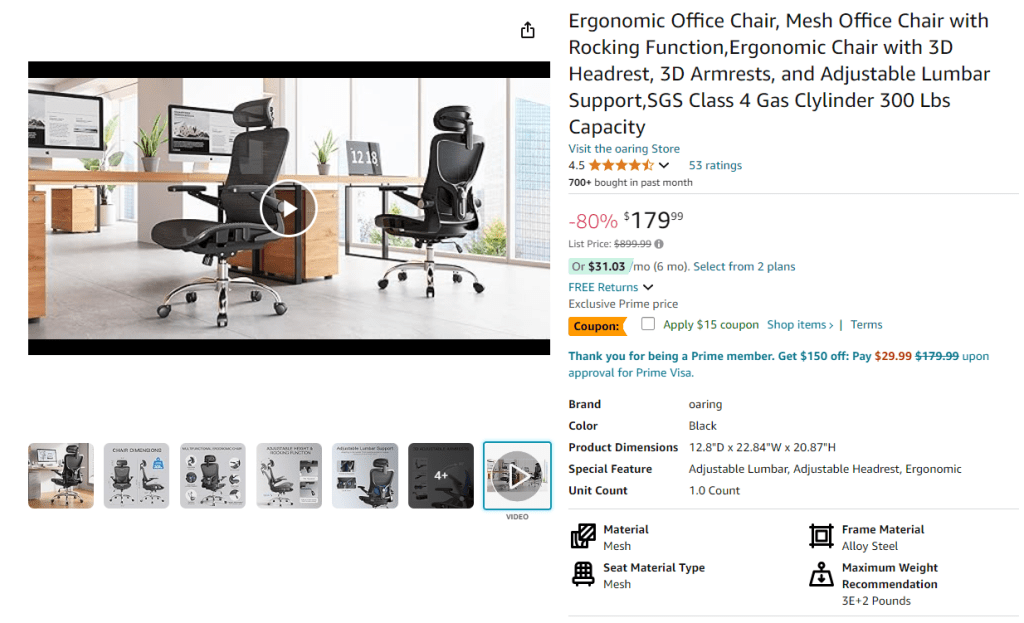 1. Ergonomic Office Chair, Mesh Office Chair with Rocking Function, Ergonomic Chair with 3D Headrest, 3D Armrests, and Adjustable Lumbar Support, SGS Class 4 Gas Clylinder 300 Lbs Capacity