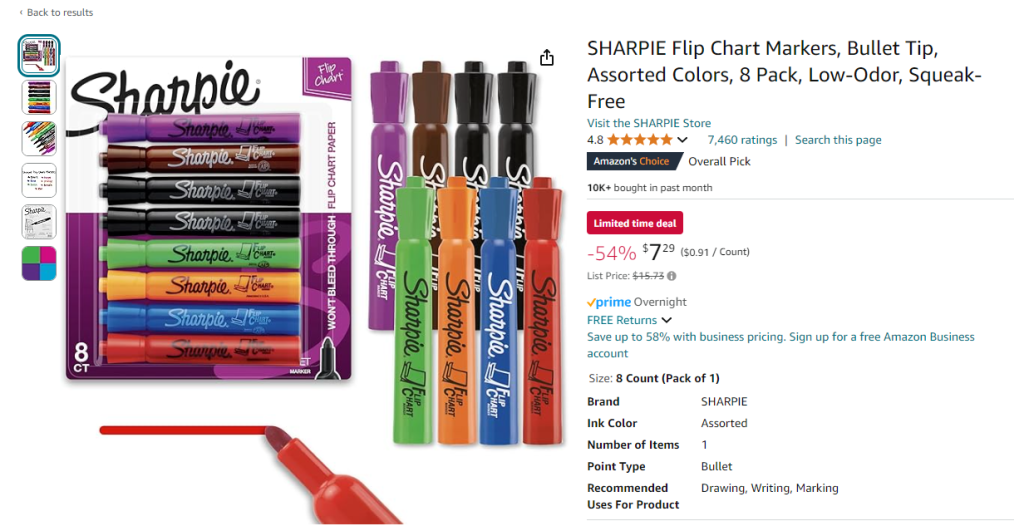 2. SHARPIE Flip Chart Markers, Bullet Tip, Assorted Colors, 8 Pack, Low-Odor, Squeak-Free