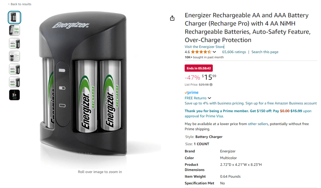 3. Energizer Rechargeable AA and AAA Battery Charger (Recharge Pro) with 4 AA NiMH Rechargeable Batteries, Auto-Safety Feature, Over-Charge Protection