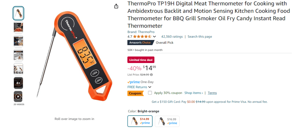 4. ThermoPro TP19H Digital Meat Thermometer for Cooking with Ambidextrous Backlit and Motion Sensing Kitchen Cooking Food Thermometer for BBQ Grill Smoker Oil Fry Candy Instant Read Thermometer