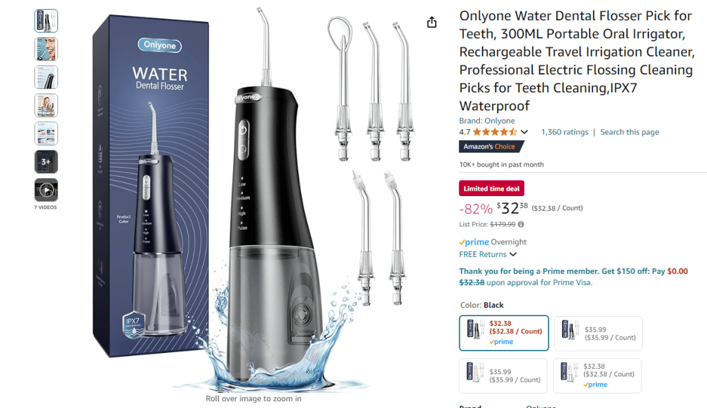 3. Onlyone Water Dental Flosser Pick for Teeth, 300ML Portable Oral Irrigator, Rechargeable Travel Irrigation Cleaner, Professional Electric Flossing Cleaning Picks for Teeth Cleaning,IPX7 Waterproof