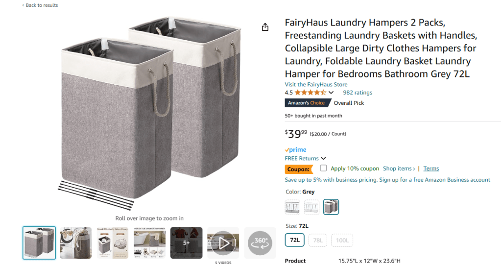1. FairyHaus Laundry Hampers 2 Packs, Freestanding Laundry Baskets with Handles, Collapsible Large Dirty Clothes Hampers for Laundry, Foldable Laundry Basket Laundry Hamper for Bedrooms Bathroom Grey 72L