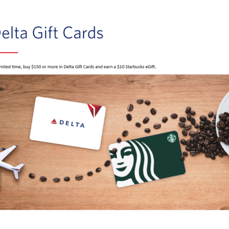 $10 Starbucks Gift Card For $150 Delta Gift Card Purchase